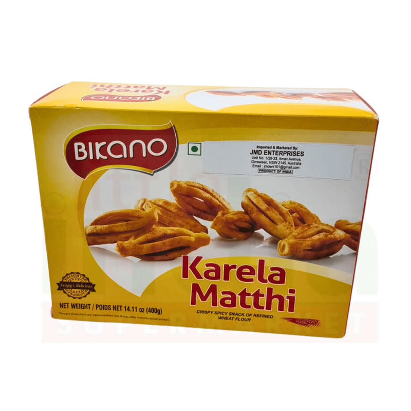 BIKANO Karela Matthi 400g. Welcome to Indi-Mart Grocery Store, your premier destination for quality grocery products in Sydney! Our carefully curated selection of items ensures a delightful shopping experience that caters to your every need. Located conveniently in Sydney, Indi-Mart Grocery Store is your one-stop-shop for all things grocery. Embrace the Indi-Mart Grocery Store experience and elevate your shopping journey with quality, variety, and convenience. Shop with us today and let Indi-Mart Grocery Store be your preferred choice for grocery shopping in Sydney!